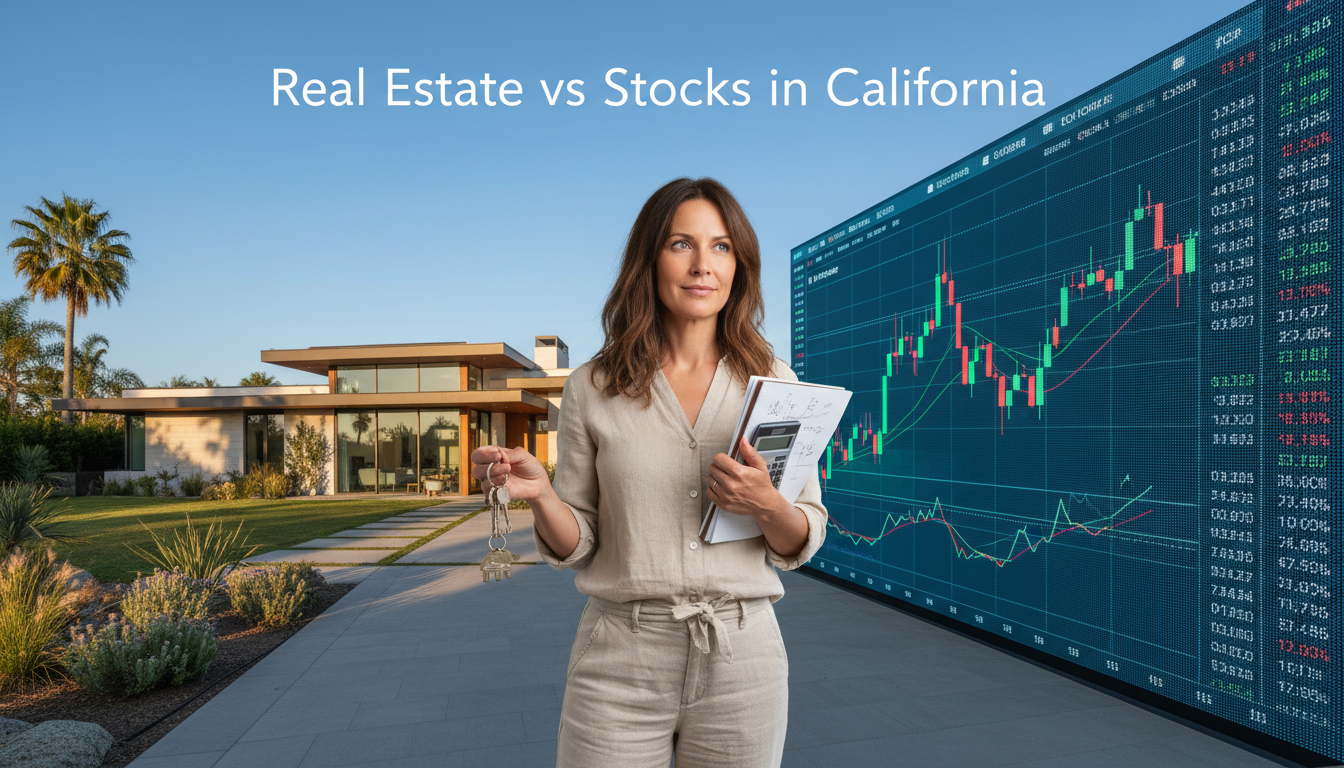 In California, leverage, appreciation, tax advantages, and rental income often allow real estate to build wealth faster for those who can access it.